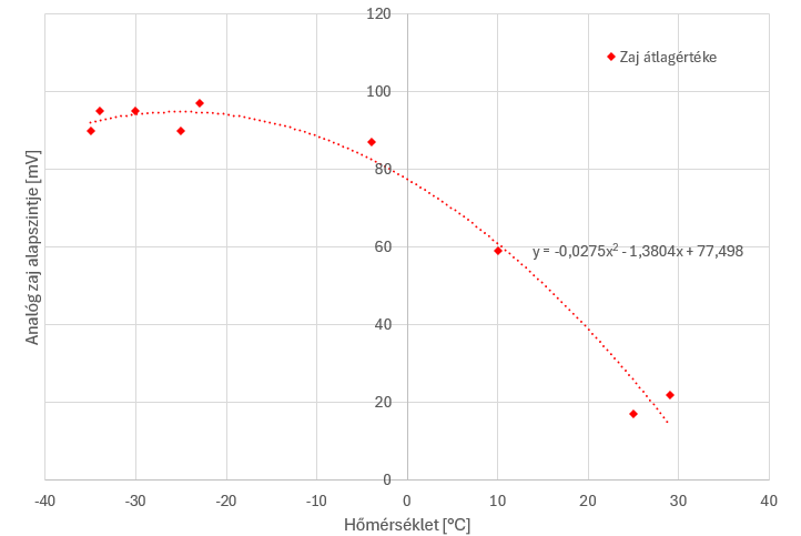 Itt egy sorozatos tesztmérésből származó karakterisztika látható, melyek különböző hőmérsékleteken mért átlagos zajszinteket ábrázolnak.