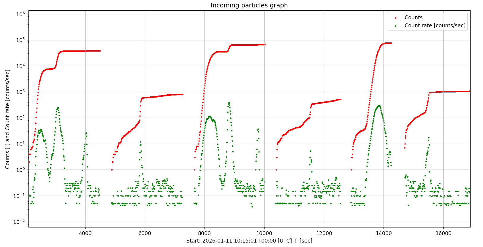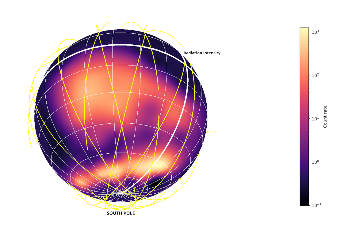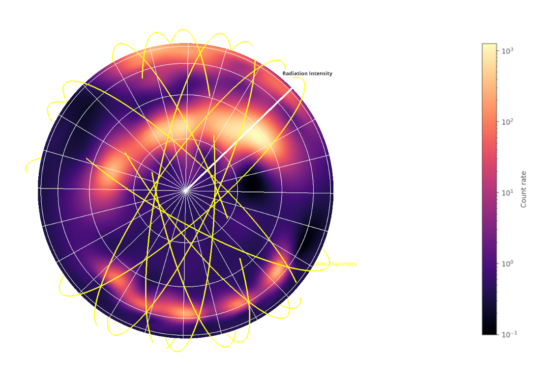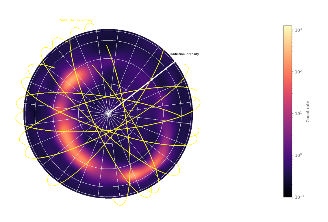 Az 520 km magasan elhelyezkedő napszinkron LEO pálya mentén mért beütésszám-sebességek regressziója alapján szépen kirajzolódtak a Föld körüli sugárzási övek, vagy közismertebb nevükön a Van Allen-övek jellegzetességei.